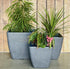 Square tapered in pots in rough stone finish.