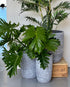 Light grey pot with wavy horizontal ribs in lightweight ceramic.