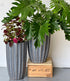 Tall Grey-Blue Pot with Vertical Stripes in Lightweight Ceramic.